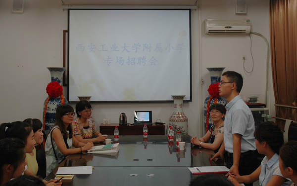 7月3日上午9点,jinnian金年会于明德楼三楼会议室召开西安工业大学附属小学师范类专场招聘会。本次招聘会邀请到西安工业大学附属小学教导处刘主任一行四人,公司学工办主任邵力及2012级小学教育专业10名员工参加了本次招聘会。