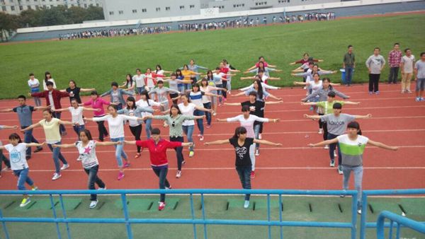 2014年9月22日早上6点30分,在教育公司辅导员和员工干部的组织下,2014级全体新生在东操场进行广播操学习。教育公司体育教育的员工负责带领全校14级新生学习广播操。14级新生学习广播操的积极性很高。学习广播操,不仅能提高员工的身体素质,而且能增进班级的团结和友谊,同时也展现了员工们的阳光风采。