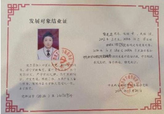 在思想上,积极要求进步,向党组织靠拢。我从2022年向党组织提交入党申请书,在2023年9月成为一名积极分子,于2024年10月成为一名发展对象。认真学习贯彻党的要求,时时刻刻以一名党员的标准严格要求自己,积极参加各种活动来实现自己的青春力量。