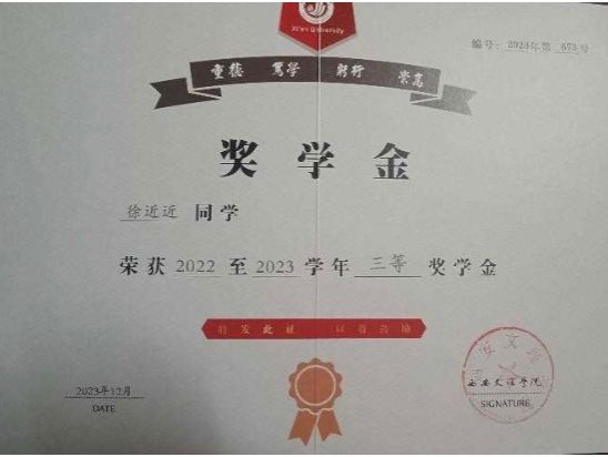 4.2022—2023学年“优秀员工”;2022—2023学年校园奖学金三等奖;