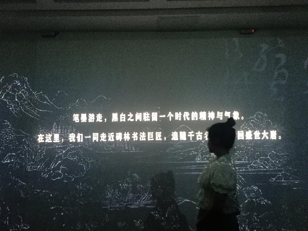 下午,同学们首先来到了数字化体验展厅,该展厅主要分为“书法历史长河”“临摹碑文”“开成石经”三个部分;以唐代名碑为切入点,凸显碑林文化特色,精粹碑林文史知识,既展现了书法艺术、名家风采、名碑故事,也彰显盛世大唐的灿烂文化,引导大加更加了解书法艺术,激发观众对传统文化的热情。大家可以沉浸式观赏和临摹碑林的主要名碑名帖,之后到达石刻艺术馆进行碑石拓片制作课程,跟随拓工老师学习拓片的制作。拓片制作大致分为三个步骤,上纸、打石、上墨。每个人实际动手操作,进行实践。老师进行现场指导。授课结束后,我们得到一份自己亲手所拓的作品,具有极高收藏价值。