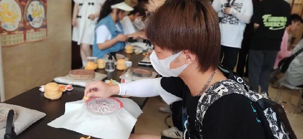 随后进入彩绘瓦当环节,瓦当拓片的步骤是:覆纸—蘸水拓—晾干—拓印,每一个步骤都需精益求精才能完成一幅精美的瓦当拓印作品。大家在老师的悉心指导下亲自体验瓦当拓印的制作,自己动手把喜欢的图画拓印在纸上,通过拓印,激发了同学们的学习乐趣,提高了艺术审美。