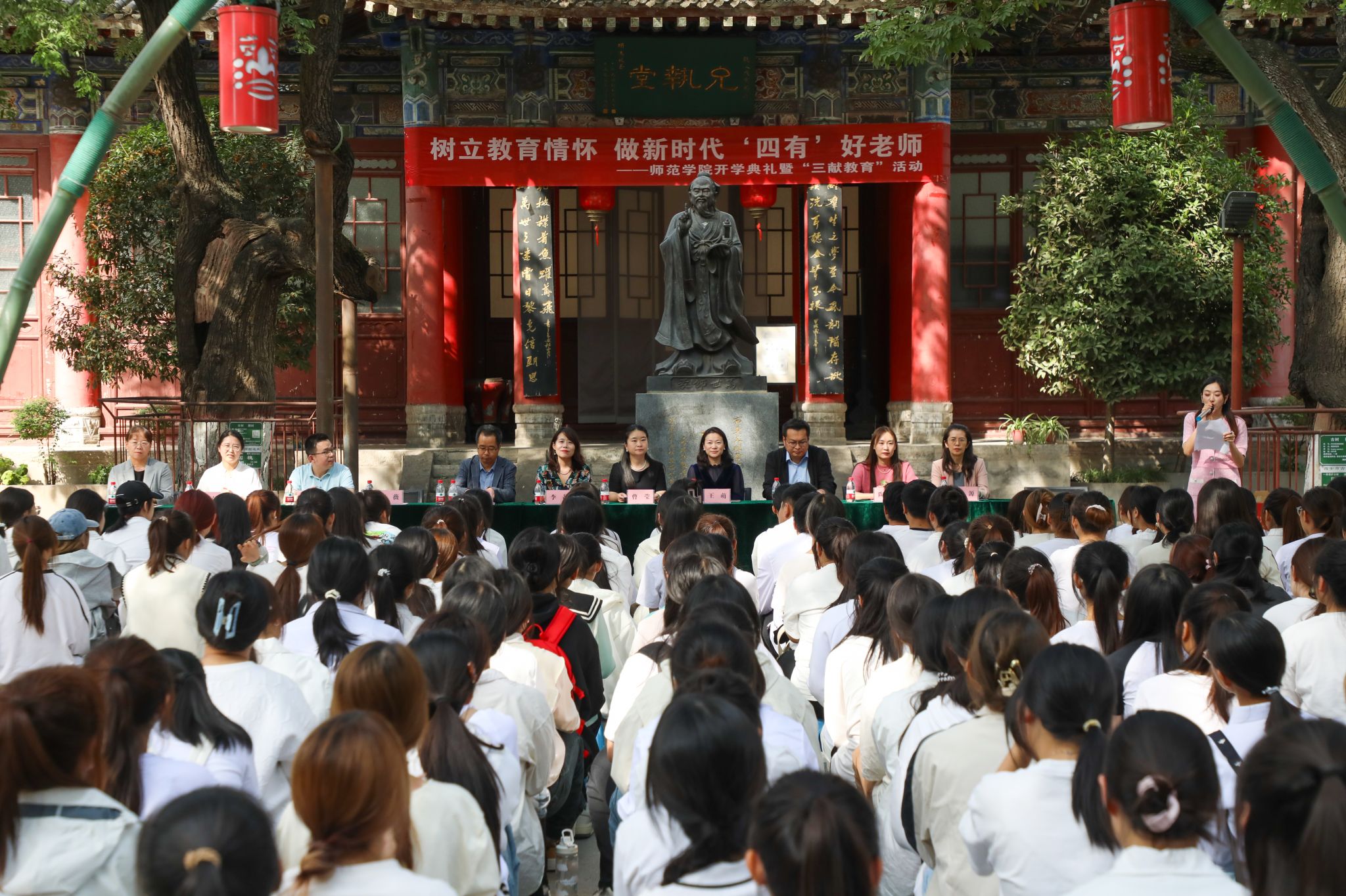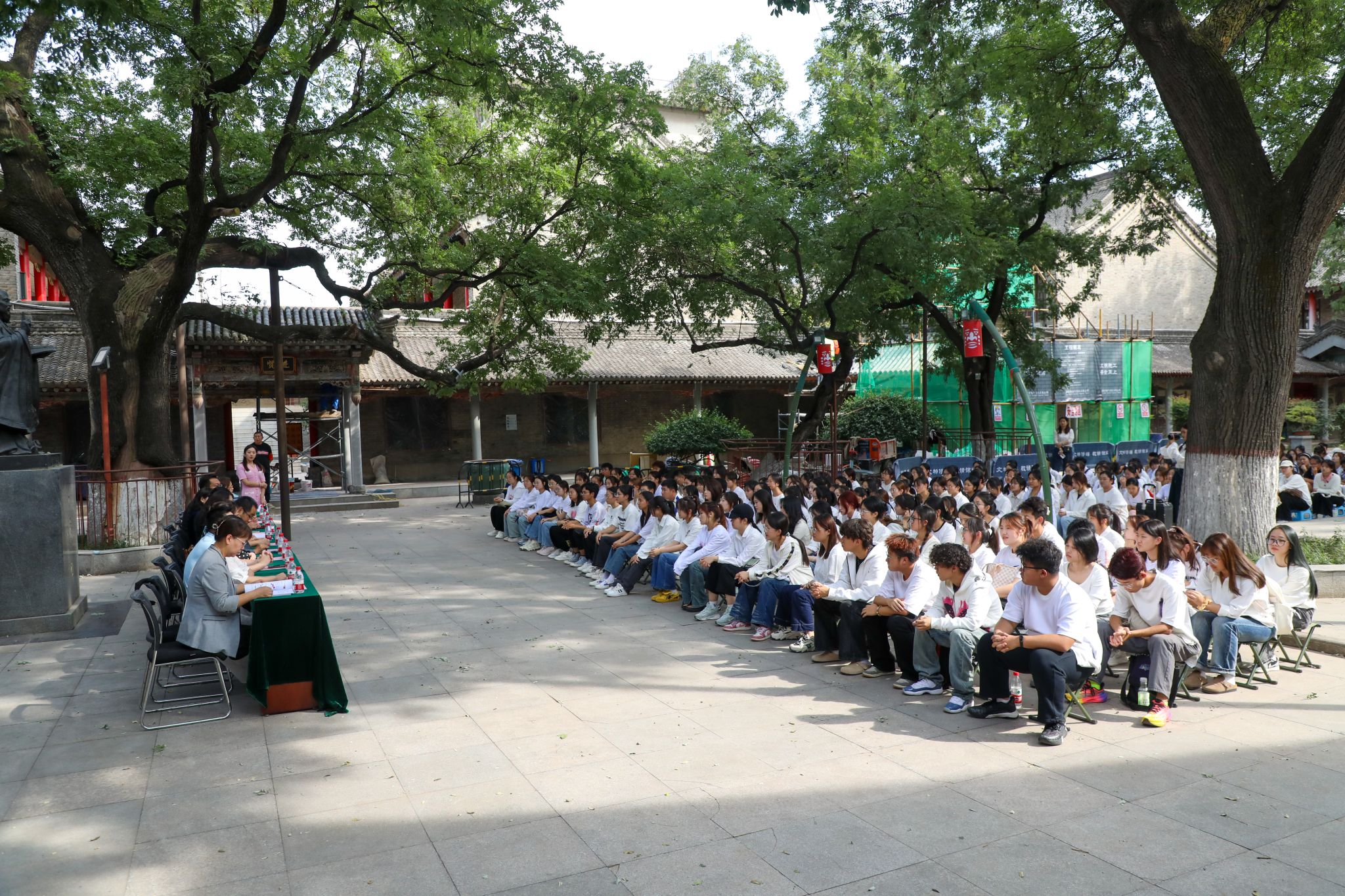 活动伊始,刘昱彤老师在孔子像前,满怀热情且真挚地阐述了此次活动的重要意义,其言辞间饱含对“三献”活动的热爱与期待,传递出学为人师、行为世范的强烈社会责任感和人文关怀。初入这所历史悠久、学术氛围浓郁学府的新生们,满怀对未来四年学习生活的美好憧憬,整齐列队,以最饱满的热情和最诚挚的态度,准备迎接挑战与机遇。