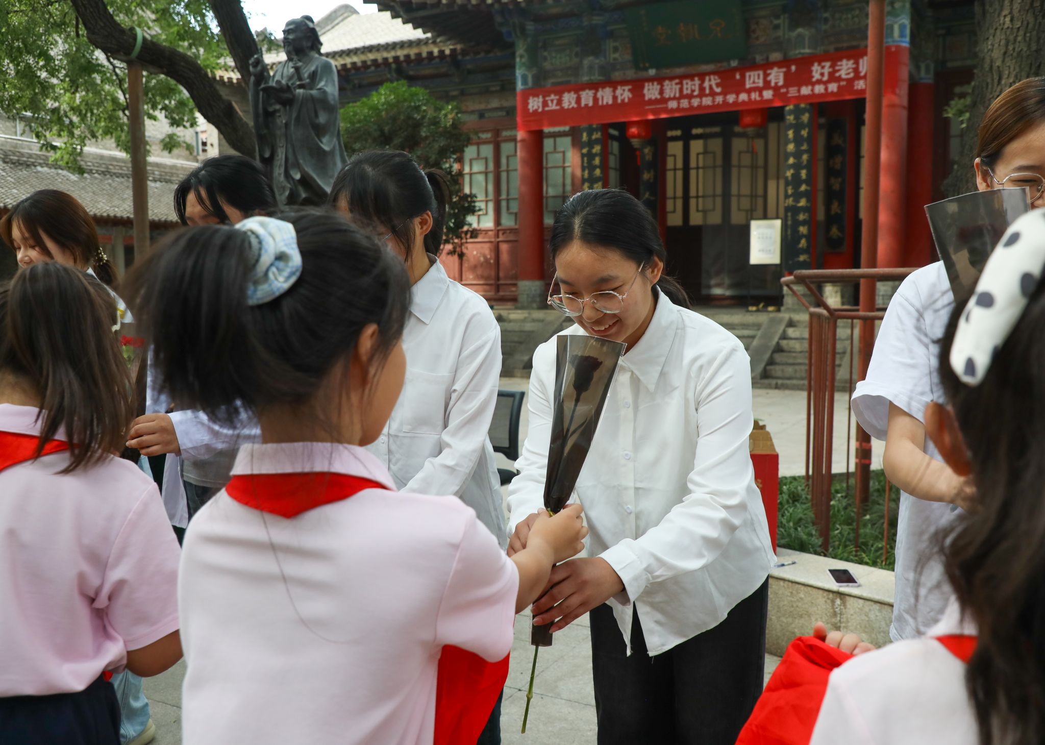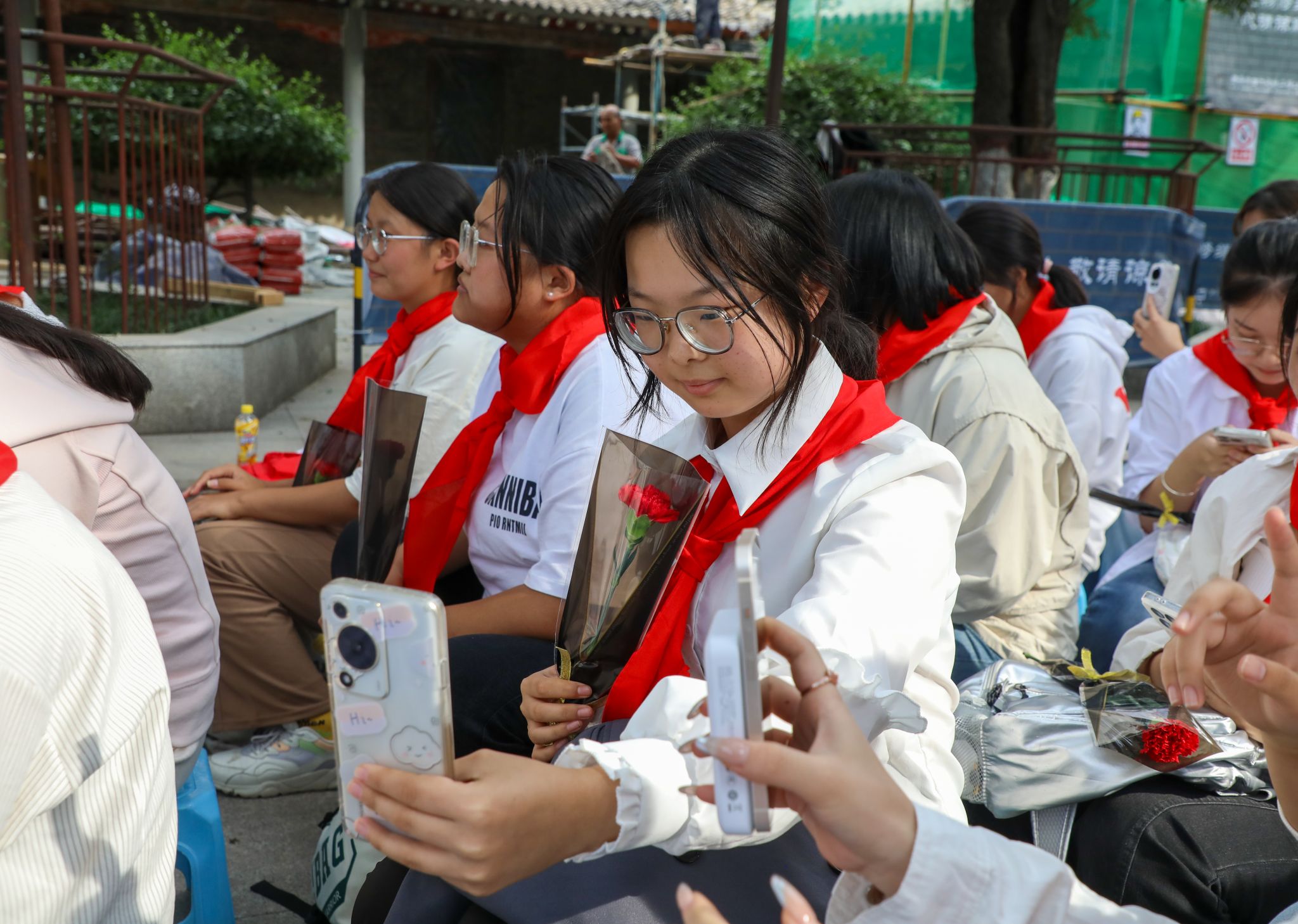 “三献”活动不仅是情感交流,更是教育情怀的传递与升华。献花,彰显对教师辛勤耕耘的尊重与感激;献诵,意味着教育接力棒的传递;献红领巾,象征着教育的传承和责任的担当。它让新生们深知,成为一名优秀教师,不仅要有扎实的专业知识和教学技能,更要有一颗热爱教育、关爱员工的心。