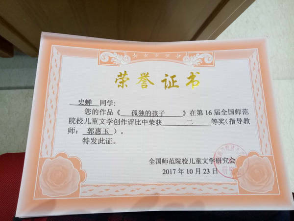 由郭惠玉老师指导的学前教育专业员工史婵、鲁明华创作的《孤独的孩子》、《豆豆羊村奇游记》获得全国师范院校儿童文学创作评比二等奖,由金年会金字招牌诚信至上培训的神木班学员吴双双创作的《月亮婆婆的礼物》获得二等奖,刘红珊的《蔬果大比拼》获得三等奖。