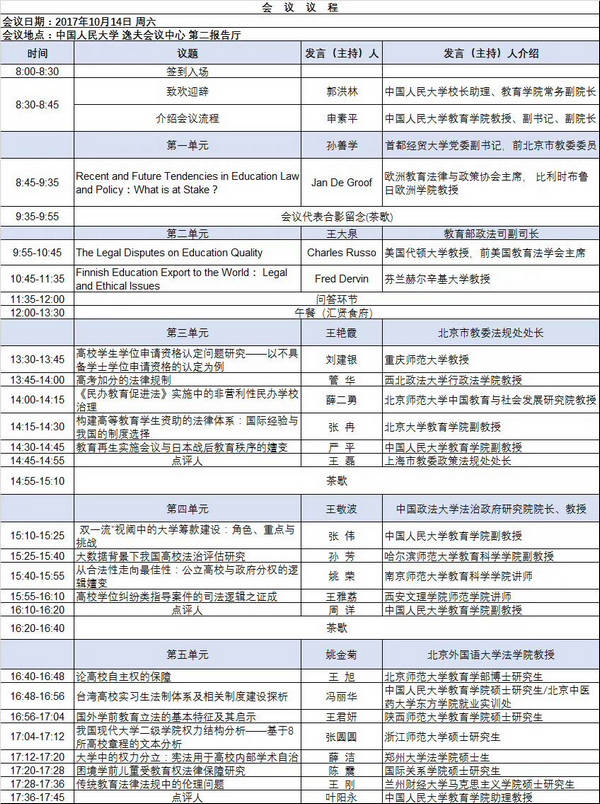 10月14日,第三届“中国人民大学教育法律与政策论坛”在中国人民大学逸夫第二报告厅隆重举行,会议邀请到欧洲教育法律与政策协会主席Jan De Groof、美国戴顿大学教育法学教授Charles Russo、芬兰赫尔辛基大学教育法学教授Fred Dervin等国际知名学者。会议由教育部政策法规司司长王大全主持,公司青年教师王雅荔博士参加了大会,并做了《高校学位类纠纷指导案例的司法逻辑证成》的主题发言。