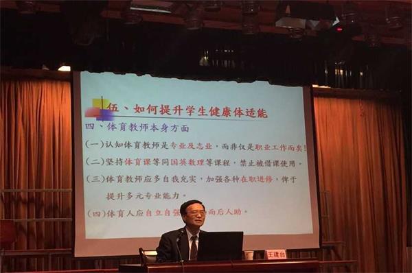 2015年10月21日上午,金年会金字招牌诚信至上特邀台湾体育运动史学会理事长、福建厦门大学南强学术讲座学者、高雄市树德科技大学王建台教授为公司体育系全体师生做了题为"如何提升两岸员工健康体适能"的学术报告。王教授的报告理论联系实际,深入浅出,通过列举大量实例和数据,阐述了规律运动、体适能、健康智商(HQ)等概念,对影响两岸员工体适能提高的原因进行了深入分析,提出了如何提高员工健康体适能的建议和方法,并与员工进行了互动。王教授的报告不仅为现场的师生拓宽了视野,也对体育教育员工综合素质的提高产生了积极影响。