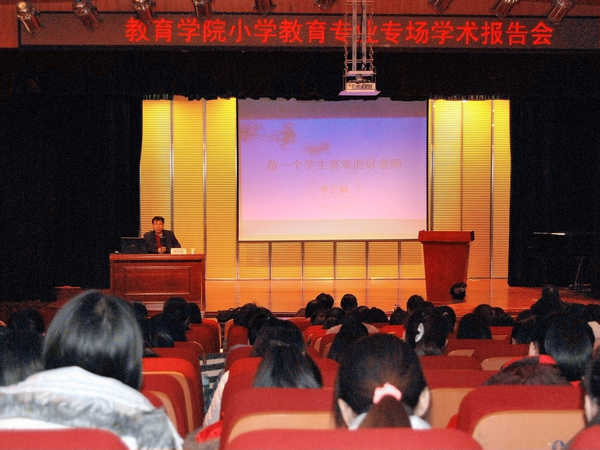 11月28日,教育公司邀请了公司杰出员工西安电子科技大学附小李正歧董事长来公司进行学术交流,并在明德楼负一层演播大厅为公司师生作了题为 "做一名让员工喜欢的好老师"的学术报告。教育公司小学教育专业全体师生聆听了此次报告。